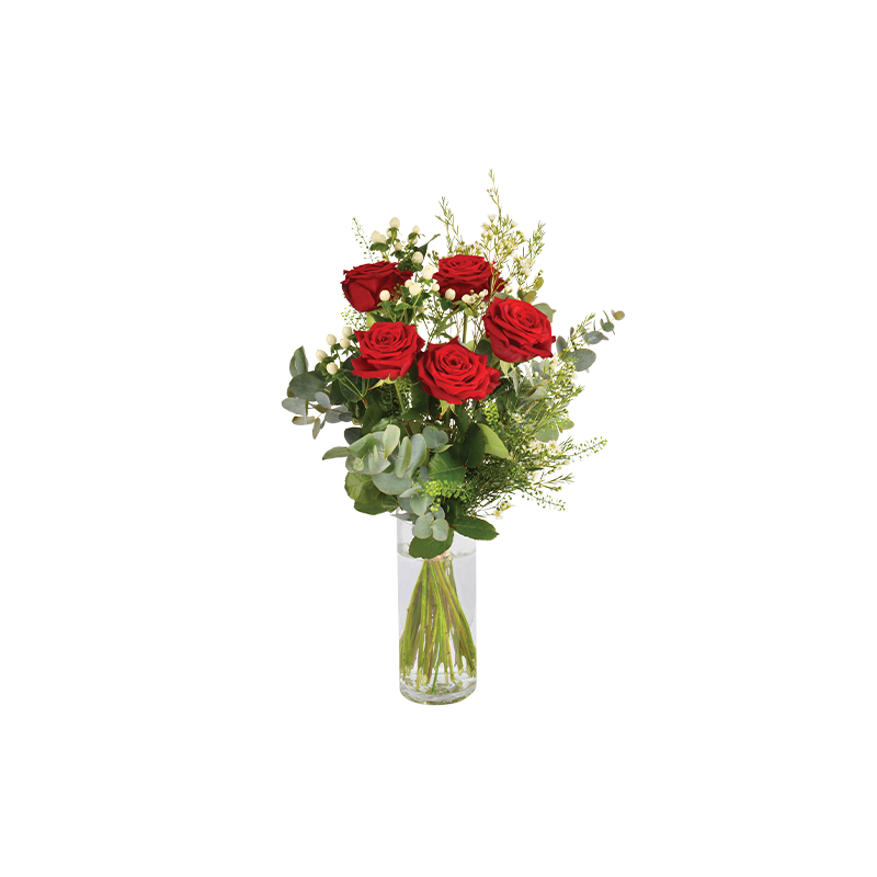 Bouquet de 5 roses rouges + verdures